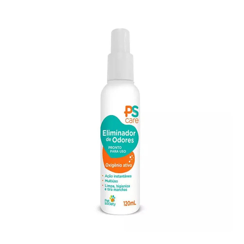 O PS Care Eliminador de Odores 120 mL, da Pet Society, é um limpador multiuso pronto para uso, desenvolvido especialmente para neutralizar odores causados por pets, como urina, fezes e outras sujeiras orgânicas. Sua fórmula com oxigênio ativo age de forma rápida e eficaz, eliminando maus odores em aproximadamente 10 segundos, sem mascarar cheiros.