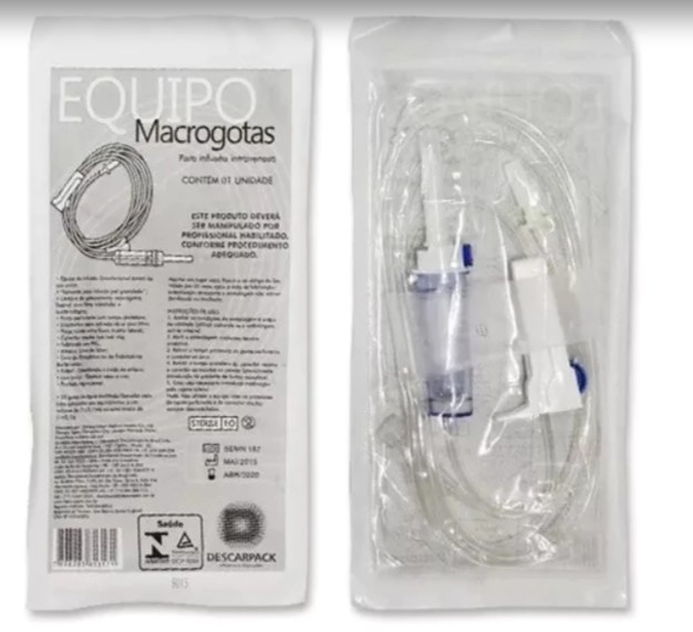 O Equipo Macrogotas DESCARPACK é um dispositivo médico projetado para a administração de líquidos intravenosos. Este equipamento consiste em um tubo flexível, um filtro e um bico tipo Luer Slip, permitindo uma conexão segura e eficiente com outros instrumentos de infusão.