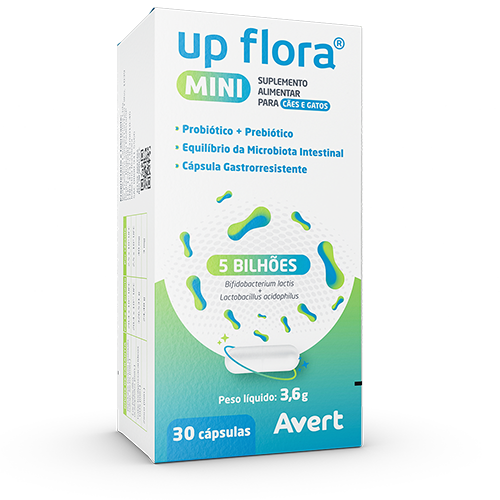 UP FLORA® MINI é um suplemento alimentar composto por probiótico, prebiótico e zinco. Indicado para auxiliar no equilíbrio da microbiota intestinal de cães e gatos em suas diversas fases de desenvolvimento
