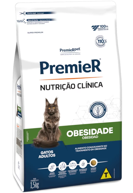 PremieR® Nutrição Clínica Obesidade Gatos é um alimento coadjuvante indicado para gatos adultos com excesso de peso para a obtenção do peso ideal ou por toda vida do animal quando recomendado pelo médico-veterinário nutrólogo.