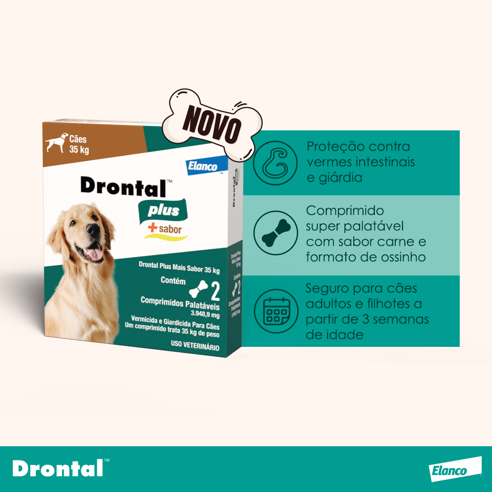 Drontal™ Plus Sabor Carne é um produto Elanco, líder global em saúde animal, dedicada a inovar e oferecer soluções na prevenção e tratamento de animais de companhia.