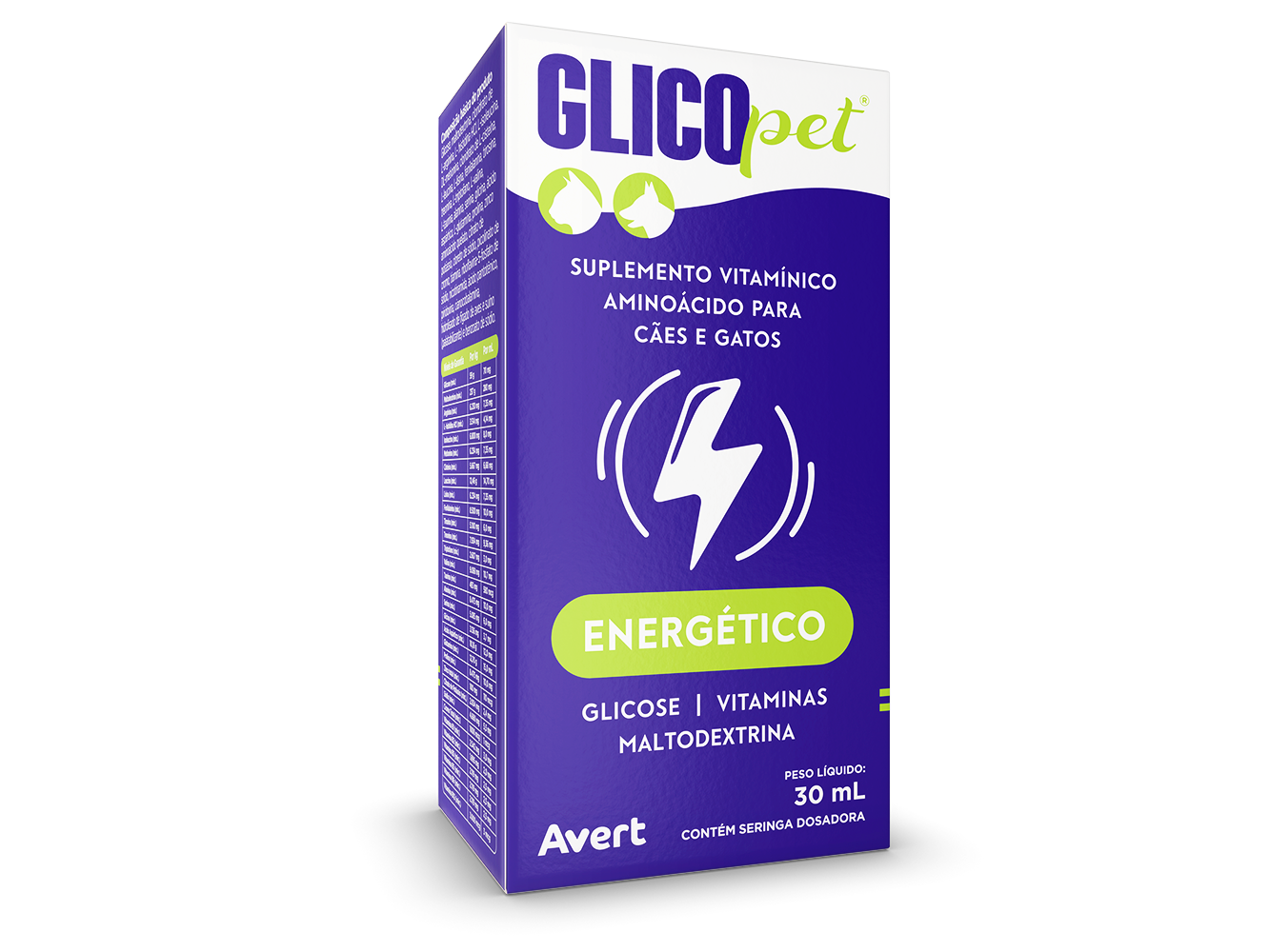 GLICOpet® é um suplemento que fornece fontes de energia rápida e nutrientes (vitaminas, minerais e aminoácidos) que dão suporte ao metabolismo energético e obtenção de calorias.