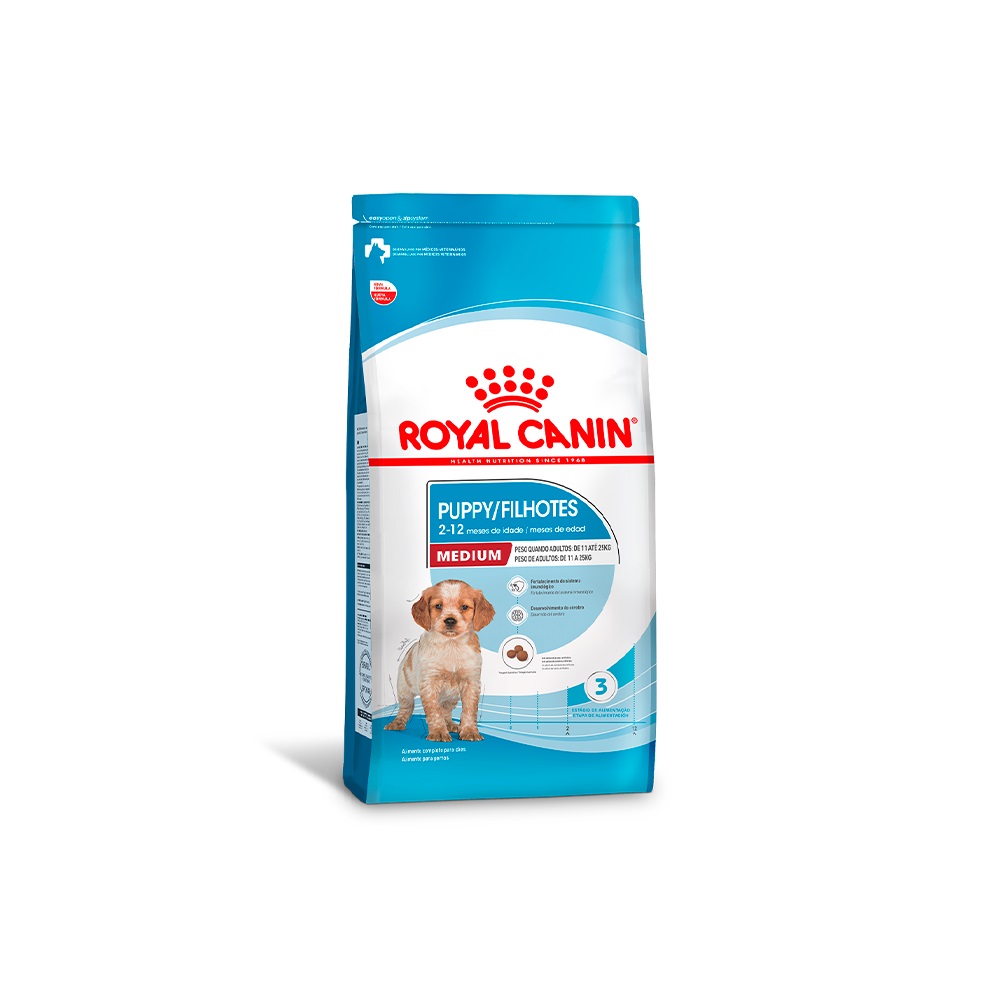 Alimento completo seco para cães filhotes de porte médio (peso de 11 até 25 kg quando adultos) - De 2 a 12 meses de idade.