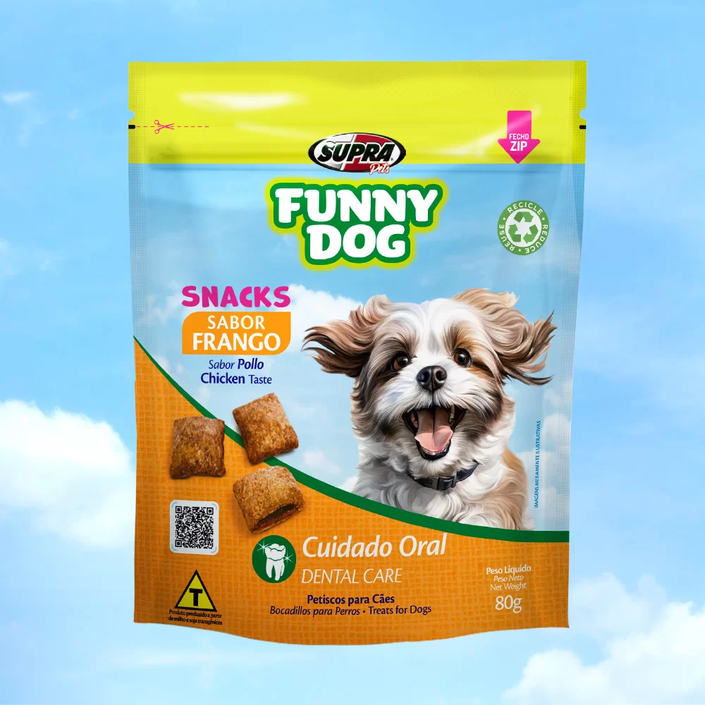 O Funny Dog Frango é um petisco desenvolvido especialmente para cães, oferecendo sabor e nutrição como forma de agrado ou recompensa no dia a dia. Produzido com ingredientes selecionados, possui elevada palatabilidade graças à presença de proteínas de origem animal e hidrolisado de fígado, que tornam o snack mais atrativo para os pets.